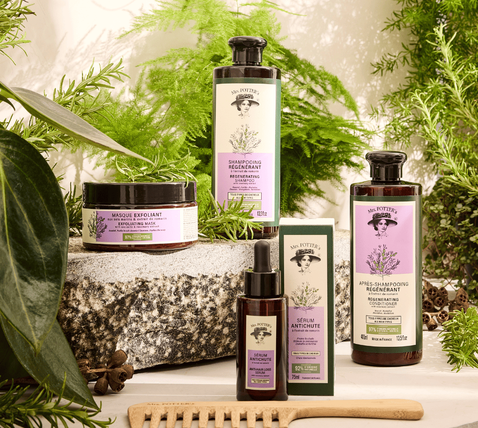 Depuis toujours, Mrs Potter’s puise dans la richesse des plantes pour offrir des soins capillaires respectueux et efficaces. Aujourd’hui, cette expertise ancestrale s’exprime dans une gamme au romarin, ingrédient phare reconnu pour ses vertus purifiantes et fortifiantes.